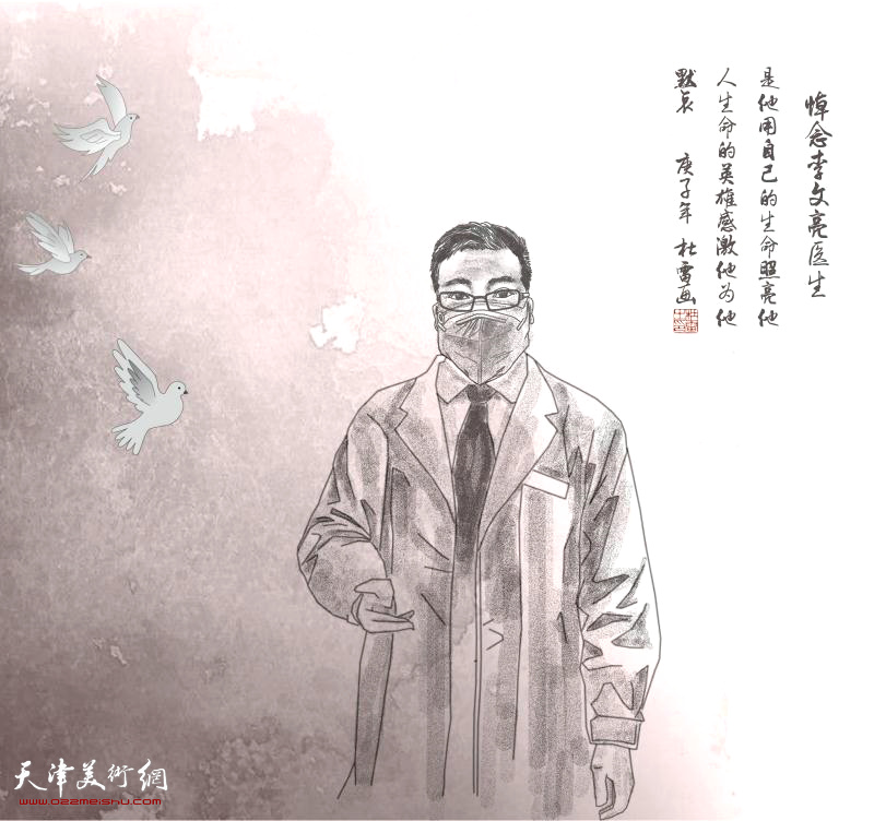 艺术家杜雷作品:《悼念李文亮医生》 (白描)