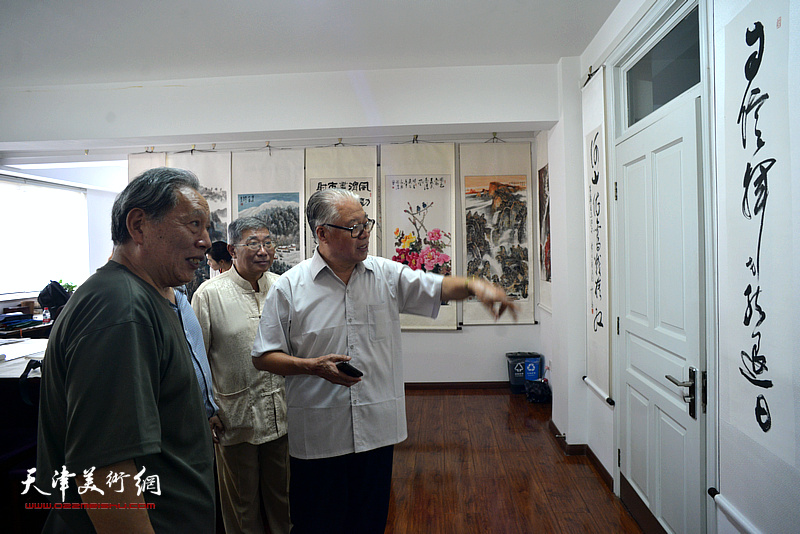 王如意、李文安、赵桂中、王勇观赏展出的作品。