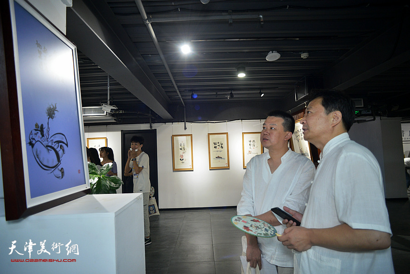 罗澍伟、刘栋、赵君鹏观赏展出的作品。