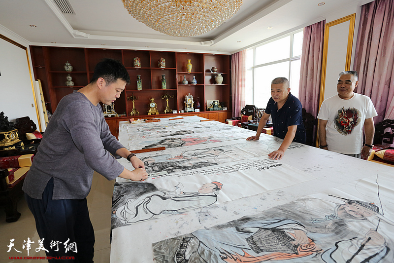 胡玉林、林德谦、杨露观看韩金山创作“君子四爱、高士四隐”。