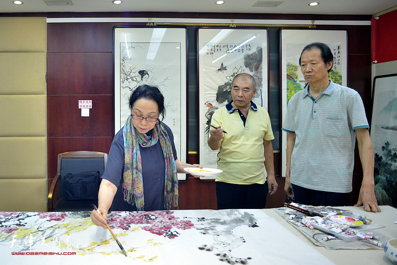 崔艳萍、高杰、陈之海在朝华园南开画院活动中心创作。