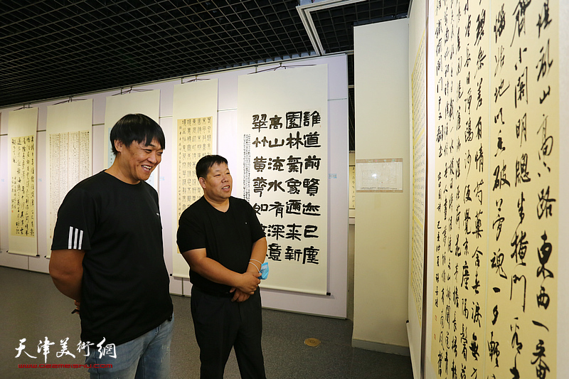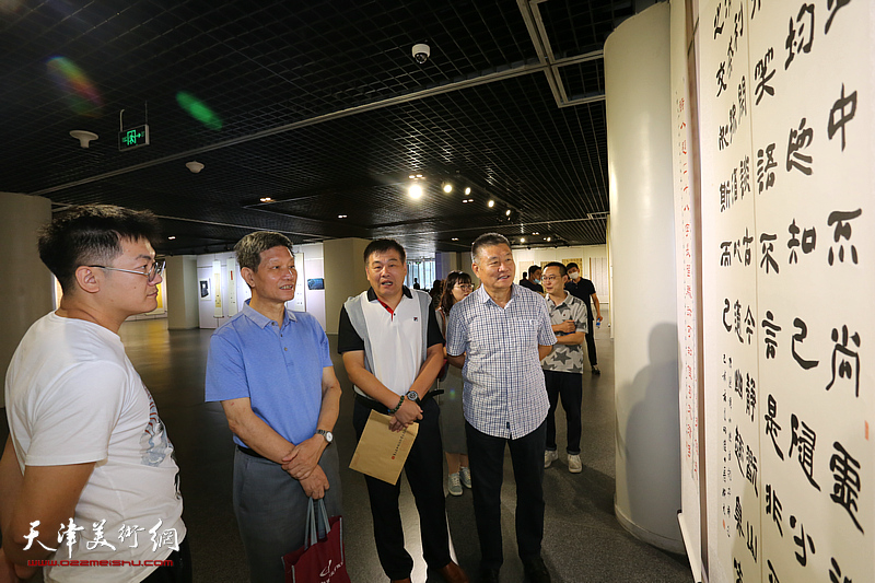 杨国欣、黄文新、刘磊、张俊雄、张善继、井世文等在天津市第二届青年书法篆刻作品观摩展现场。