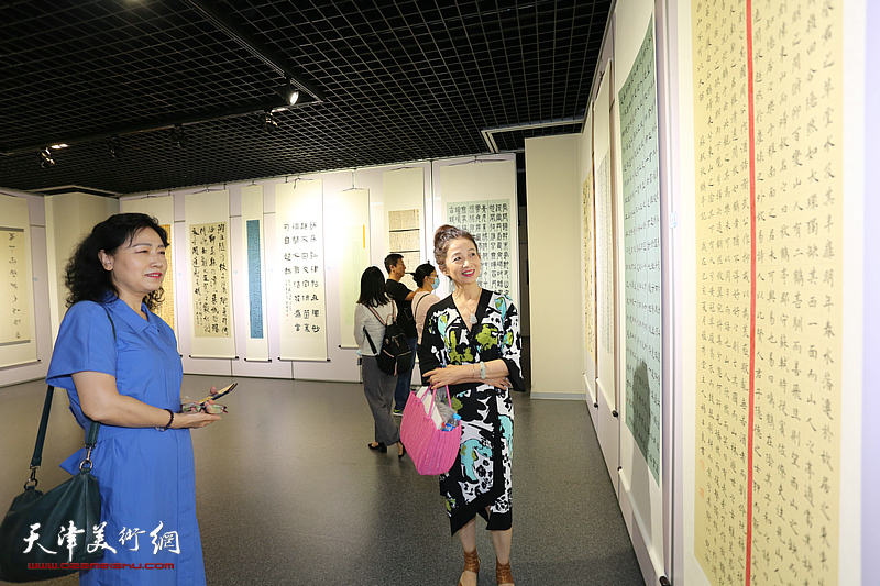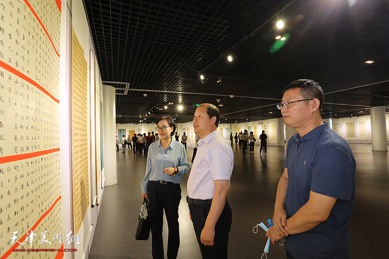 出席揭牌仪式的领导和嘉宾、书法家参观天津港保税区展示中心。