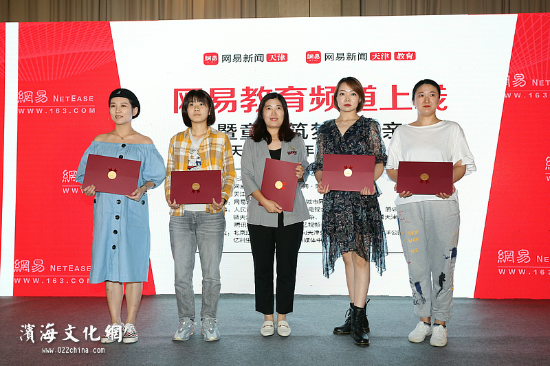 网易新闻·天津教育副总编辑孙娟为首批战略合作机构颁发证书。