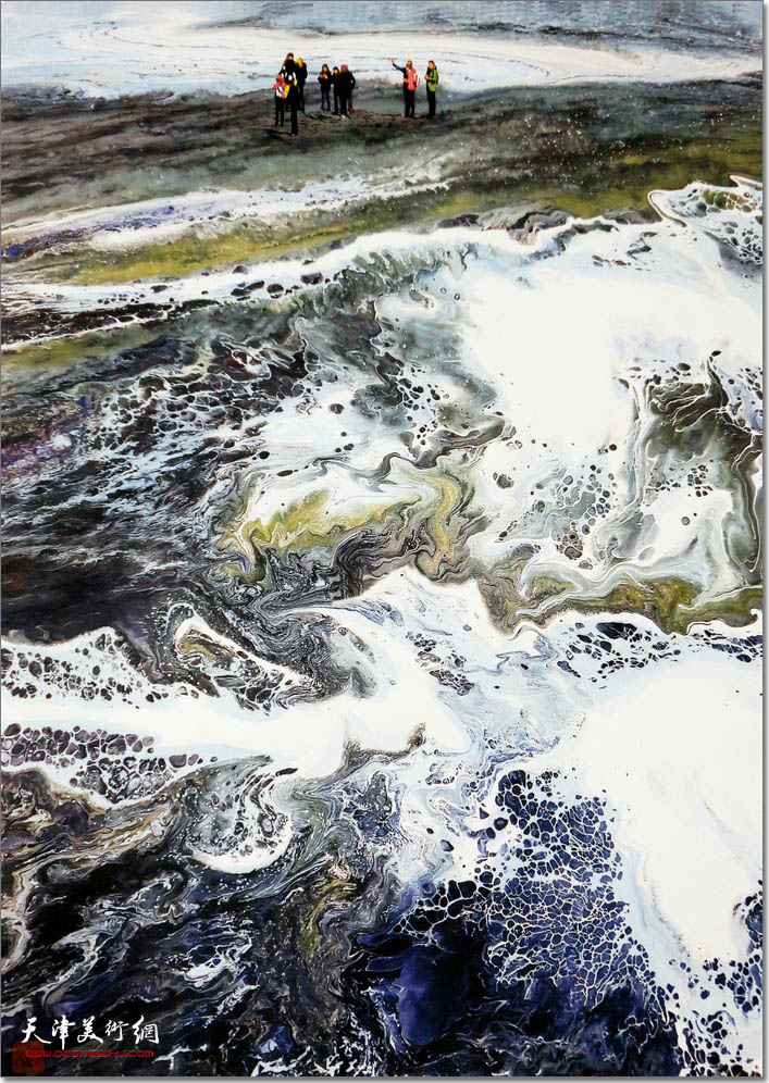 他凝神聚力、潜心耕耘、大胆尝试,他像憋足了劲的长跑运动员,在快速冲刺中不断刷新着自己的记录,其创作的数量和质量都发生了显著突破。他创作的一组展现众志成城同心抗疫的作品,在网络上被广泛转发,并受到好评。近期,他又对曾经的北极之行进行了回顾式集中创作,形成了以“相约北极”为主题的35幅泼彩作品。透过这些作品,不但让观众感受到了北极地区与众不同的地貌特征和艺术化的表现手法,也从中读到了他在艺术上的“广”、“厚”、“高”、“新”。