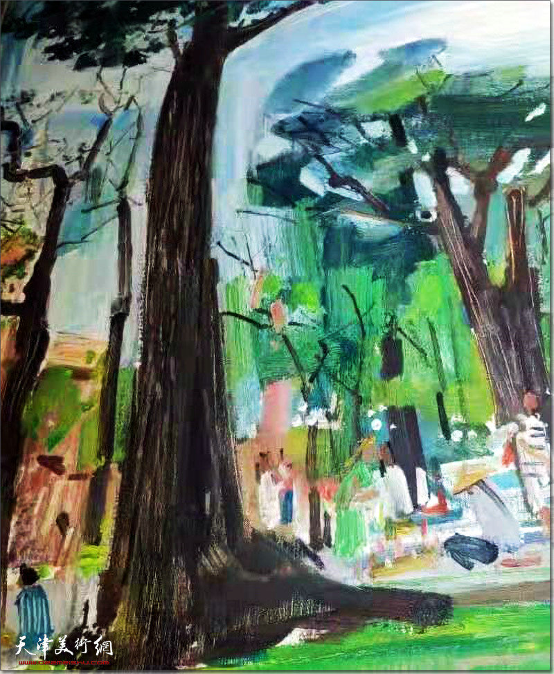 孙建平作品:青林绿荫(油画)