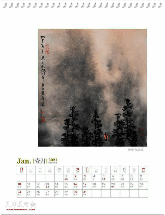 2021农历辛丑年台历 著名中国画家晏平山水画作品 一月