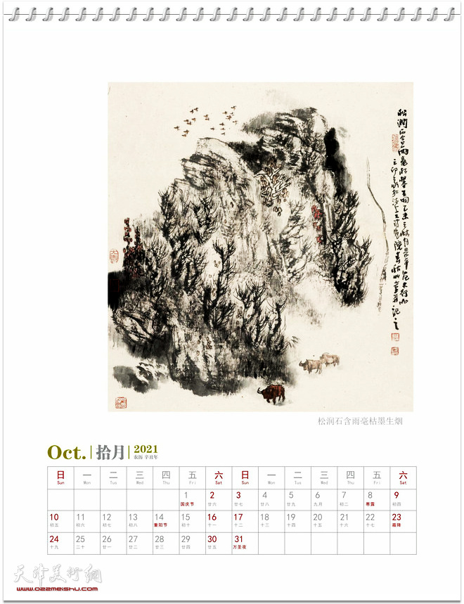 2021农历辛丑年台历 著名中国画家晏平山水画作品 十月