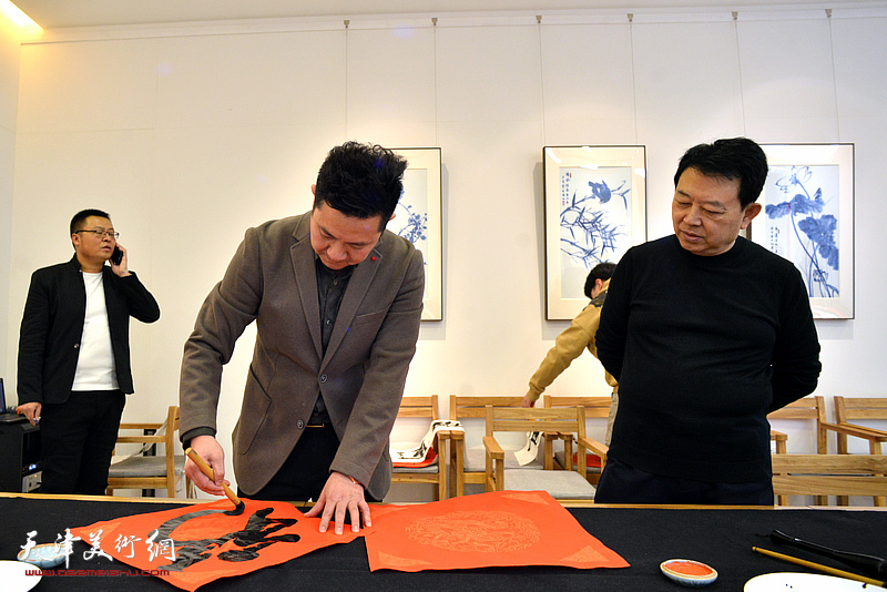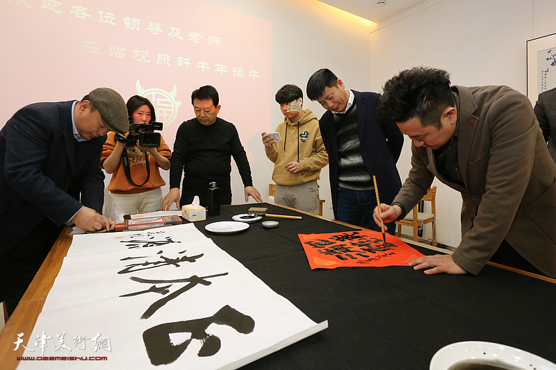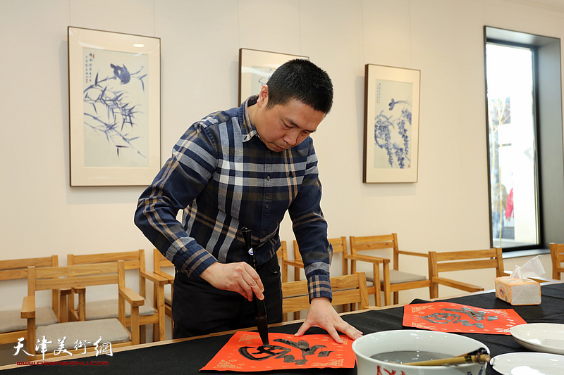天津美术网讯 2月3日,正值立春节气,由津南区文联指导,观照轩(天津)文化传播有限公司、观照轩慈善文化基金主办的“观照百姓生活,文化凝聚力量;拥抱会展,智汇津南”主题活动在观照轩举行。津门书画名家齐聚一堂,挥毫泼墨,书写福字,即兴创作青花瓷器,以中国传统书画艺术的形式,共同迎接辛丑新春的到来。
