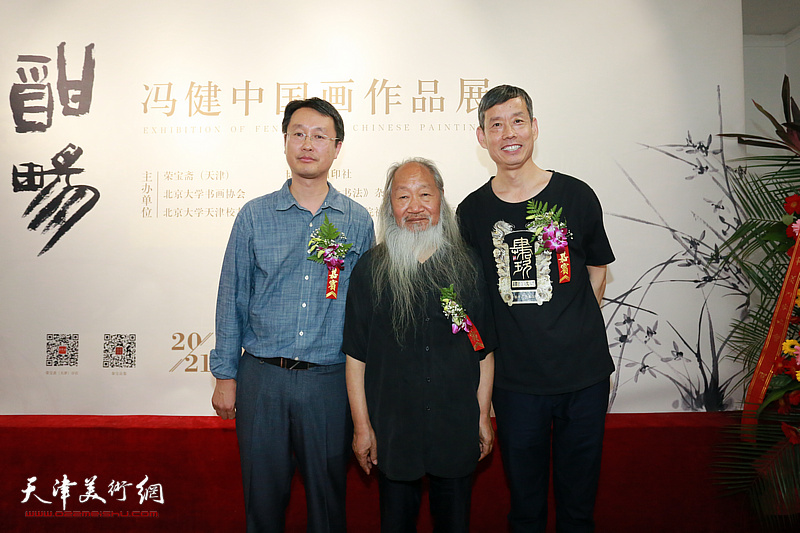 首都师范大学教授、原美术系系主任踪岩夫,南京师范大学美术学院教授、江苏花鸟画研究会名誉会长徐培晨,中国艺术研究院研究生院导师、美术创作院研究员,国家一级美术师汤立,北京大学教授、北京大学书画研究会名誉会长张振国,天津市美术家协会副主席、天津画院院长范扬,天津市美术家协会原副主席史振岭,天津市美术家协会原副主席琚俊雄,天津人民美术出版社社长杨惠东,中国书法家协会篆书委员会委员、天津市书法家协会驻会副主席邵佩英,天津著名书画家韩嘉祥、阮克敏、郭书仁、姚景卿、张亚光、张佩钢,天津师范大学教授东方乔、顿子斌,天津市美术家协会花鸟画专委会秘书长张枕石,北京大学天津校友会会长高绍林,副会长韩慧英、王玉昌,北京大学校友书画协会执行会长郭俊杰,北京大学研究员、博士生导师,北京大学书画协会常务副会长、北京大学图书馆副馆长、中书协理事祝帅,北京大学书画协会副秘书长刘小刚,北大培文教育文化产业集团总裁高秀芹,中国国际书画艺术研究会副会长王曙章,清华美院山水画工作室导师、国家一级美术师陈先水,湖南省文联网络文艺发展中心主任、中国作家协会会员蒋蒲英,北京大学教授、著名诗人陈彦光,中国书法家协会理事、中国书法家协会妇女委员会委员白锐,北京大学副教授柳磬如,北京教育学院教授张学君,暨南大学博士后、中国国家画院博士后王先岳,中央美术学院博士姚远,中国书店编辑室主任孔玉,《大众书法》杂志社执行主编陈新,北京大学李志敏书法研究会副会长郭志全,北京大学城市与环境学院副教授武弘麟,北京大学生命科学学院老师王东辉、范爱文,清华大学老师孙德利,南京篆刻艺术推广促进会秘书长陈以苏,江苏建筑学院艺术学院教授、徐州市青年美术家协会副主席徐思田,南京师范大学原办公室主任智百鸣,晋唐书画院院长高国庆,来自冯健家乡江苏省沛县的领导:沛县文联主席杨林静、副主席曹西兰,文联办公室主任侯今金,沛县美协主席杨知强,沛县书画院院长张晋,本次展览活动主办方荣宝斋天津总经理王彬,副总经理郭智文及全体工作人员,北京大学天津校友会邢志杰、张艳、马红,著名艺术家贾理新、刘豫华、常畅、葛澄岭、赵雪、叶剑、杨建民,以及书画家、收藏家、企业家、美术爱好者100余人参加了画展开幕活动。
