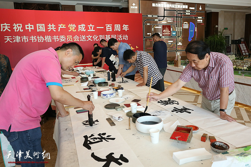 天津美术网讯 7月4日,为庆祝中国共产党成立100周年,天津市书法家协会楷书委员会送文化到基层活动在位于静海区的天津翰吉斯国际商务区举行。