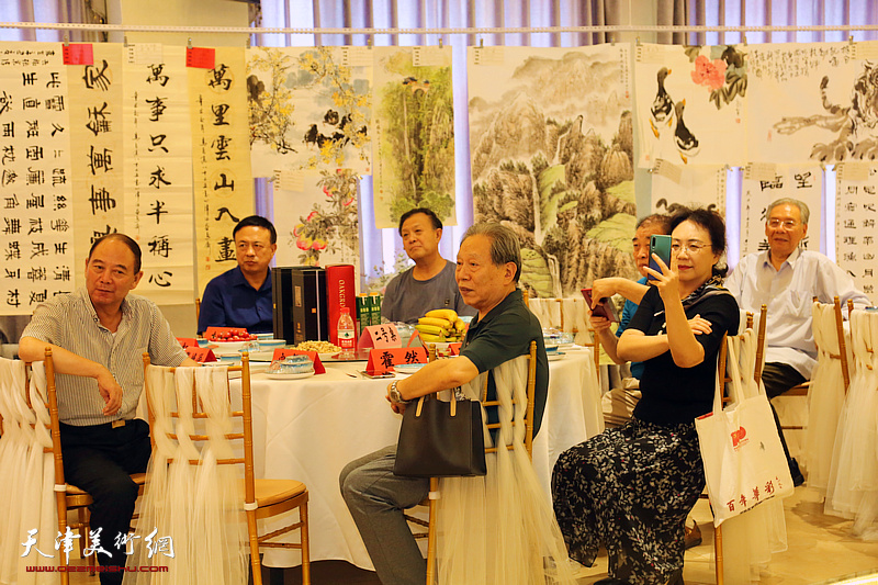 天津市河北保定商会顾问杨金海、庞金华、刘长顺、张焕学,天津市河北保定商会顾问、天津长城书画院院长霍然,河北省驻天津办事处主任杨广利,保定市政府驻京津联络处副主任张立洲,原天津画院党组书记陈英杰,天津长城书画院副院长王如意,天津长城书画院执行院长赵玉森,天津长城书画院副院长刘土岭,天津河北梆子名家陈春、付继勇,以及天津市河北保定商会、天津市河南商会企业家代表参加了此次活动。活动由天津市河北保定商会常务副会长张瑾主持。