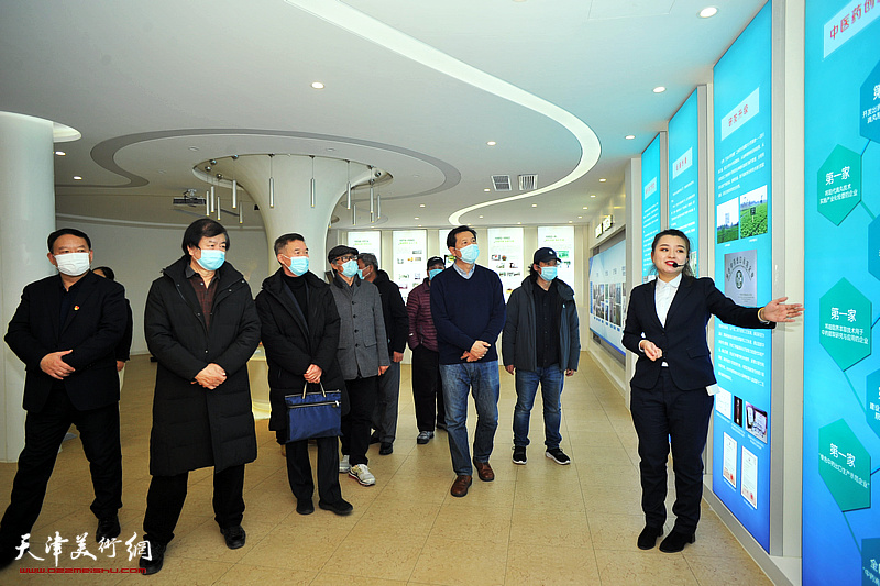 文艺宣传小分队的艺术家们参观第六中药厂企业文化展室。