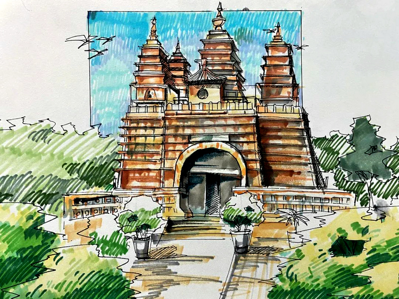 大家满怀激情,结组完成这个大题:“从丝绸之路到万里茶道古建文明建筑绘画长卷”创意表现。融合思政教学与创作并结合学生家乡建筑分四个方向作为选址:陆上丝绸之路、海上丝绸之路、万里茶道、茶马古道沿线的重要城镇节点的著名历史遗产建筑包括:明清古巷建筑群、古村落建筑群、古城史迹、府衙公馆、宗祠、寺院庙宇、庄园大院、水渠古桥、码头古道、驿站客栈、碑刻碑廊、摩崖石刻、茶栈等中华古建筑内容。按照选址又分为三幅长轴画卷组图,统一版式尽量突出整体古建筑群体或单体视觉效果,突出各地的古建筑叙事文化的艺术空间特色、画面中包含构造技术和装饰艺术节点的图示效果。更多习作从古建装饰艺术维度,图文并茂艺术再现当年建筑在丝路、古道上传递文明的历史风貌。