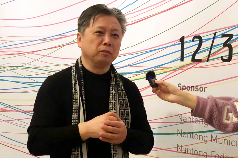 天津美术学院设计艺术学院院长高山教授在展览现场接受媒体采访