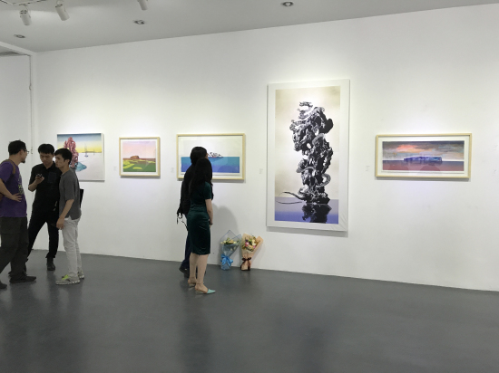 艺术家孙天龙展出了他的《隐者的视线》组画,对自己的创作孙天龙有着独特的思考,“我一直认为绘画的创作不能随心所欲,依我个人的创作角度讲,一个题材或是构图在开始之前一定经过反复的筛选与对比。犹如选择强迫症一般非要找到一个对的观察点或是视角,一个满意的场景,满意的光照度,满意的色温和满意的灰色系对比,把种种这些融合在一起。然后,按下心里的快门,试图在绘画作品的创作中呈现。古斯基一直是我偏爱的摄影师,我也一直深信一个艺术家的视角就代表了他的艺术。我想在绘画中反复挑战的不仅仅是反复折射而近乎消融的室内光线,而更想用绘画中的‘润’去冲淡摄影里温和的眩目。摄影器的极限在一天天进步也一天天的更为冷酷,反观倪瓒的一河两岸,却在冷酷中遇见温润,我想大也可以用绘画的温度去调和我们每天所处在的数码图像的环境,用版画手工纸和融水颜料的美妙反应去对抗颜色在计算机中的运算法则,创作便轻松的离开了心里快门咔嚓下的图像,变的不那么生硬了,视线和在我选择图像的倾斜线中交叉,光线成为控制颜色的调节器,在光影反复折射的室内通道里依存着。通道本身就是通道,是在我往返于燕郊画室和清华园的最后一班地铁里低头抬头就会依偎着的图像,但创作不是图解生活,心底的感动一版一版都印在纸上。”