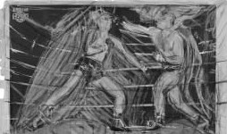 《体育镜报的双联页两个拳手》,色粉、铅笔及炭,56.6cm x 36cm,1960