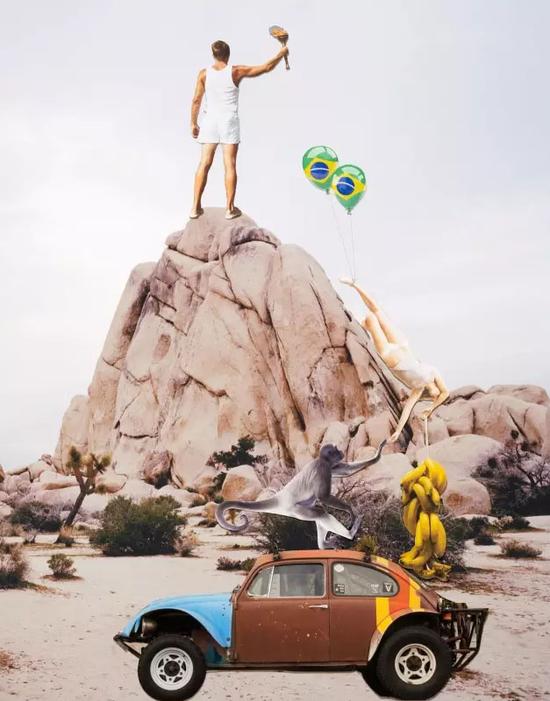 这幅作品让人联想起艺术家早期的悬浮自画像系列,这里变成了超现实的、梦境般的沙漠场景。它也表现出艺术家对重量和重力的探索,这也是这位艺术家兼电影制作人首次涉足拼贴画。