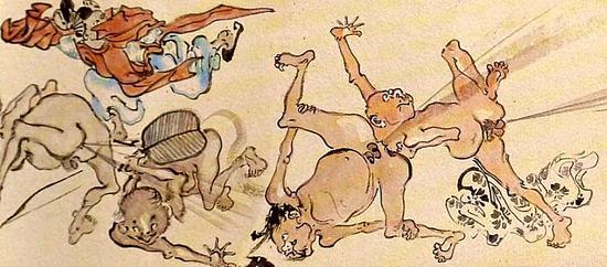恶趣味的河锅晓斋甚至还画过一套名为《开化放屁合战绘卷》,具体内容,就不详细描述了……