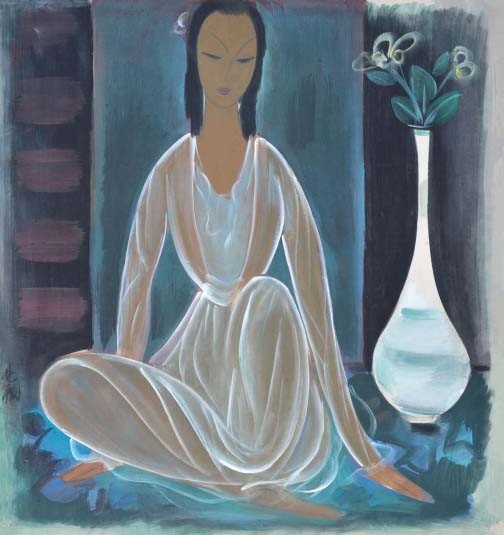 水墨与油彩、力量与柔情、诗人般的气质与清醒的理智,在林风眠的探索中恍若梦境般地交融为一体,形成了鲜明的林式绘画语言。在《仕女》画中,画家以淡雅的色块铺展衣裳,以柔润流畅的细长线条钩勒曲线。细眉、凤眼、樱桃嘴,像从中国古典文学中走出来的东方美女,散发恬淡的柔情,充满生命的律动,美到极致。