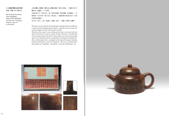 此壶曾于2013年在台湾历史博物馆主厅”国家画廊”展出。并先后著录于2008年黄怡嘉、李富美主编,《紫韵雅翫》(台北,天地方圆);2013年史俊棠、黄健亮主编《陶都风宝岛情》(台北,盈记唐人工艺出版社)。