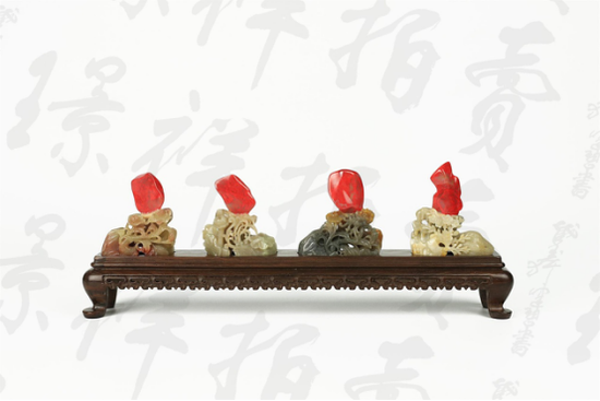鸡血石四季红随形摆件一套 现代 尺寸不一