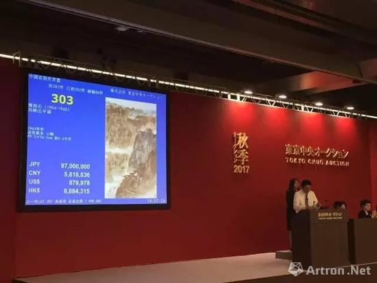 书画专场一直是东京中央的重点拍场,今次秋拍‘中国近现代书画 ’成交率稳中有升,除了吴昌硕齐白石两位近现代书画重镇以外,本次秋拍Lot 0303 傅抱石(1904-1965) 高峡出平湖 以一骑黑马之姿表现抢眼,引来现场和电话买家多方争夺,价格不断攀升,最终以1亿1155万日元的高价成交,拔得第二日书画拍卖之头筹,为东京中央写下佳绩!