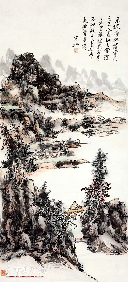 ▲ 074号拍品:黄宾虹《山水》 色纸立轴 73.5×34cm 约2.3平尺 (出版:1、《侨民华园藏画》台北鸿禧美术馆出版,1994年p190。2、《新金陵与海上名家精品集》保利艺术博物馆2010年p102)