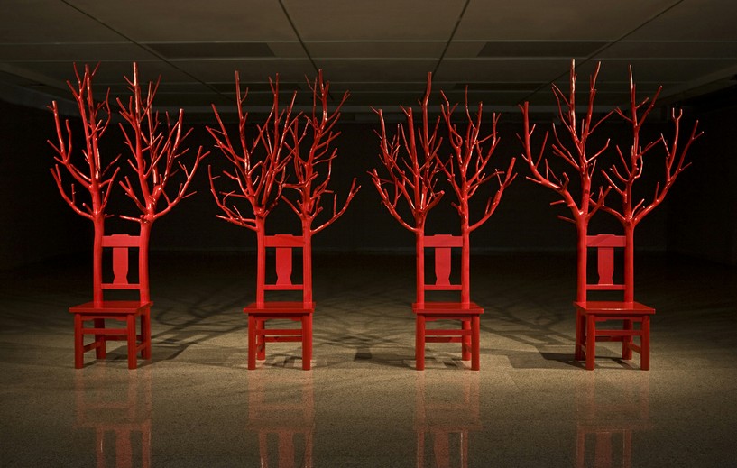 “最初考虑怎么把长寿和椅子这两个元素结合,”傅中望解释,鹿角是楚文化的代表符号之一,曾侯乙墓出土的青铜“鹿角立鹤”为大众所知。树枝的形状和鹿角很像,呈现生生不息的姿态,于是用这一符号表达对“长寿”的理解,也体现楚文化在当代的一种转换。