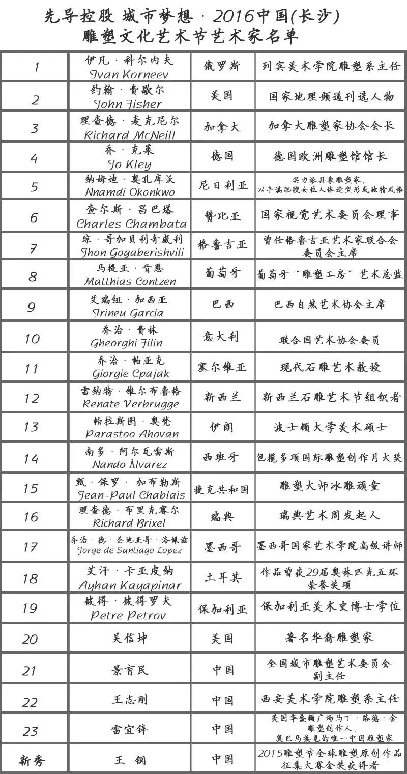 哪些大师会参加?和往年相比,今年的雕塑家阵容更加强大,新增捷克共和国、土耳其、墨西哥、瑞典、赞比亚、葡萄牙、塞尔维亚共和国、伊朗、新西兰9个国家。届时,将有23位国际雕塑大师和一位国内雕塑新秀参与创作。