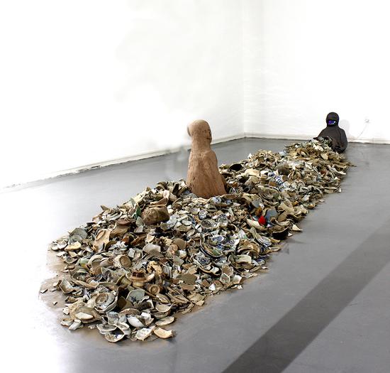 碎瓷片的介入不仅为表意语言的丰富性注入了新的活力,更重要的是这一举动引导了内在生命力的扩张延伸。碎瓷片部分与其泥土质物象本身结合后,产生了彼中有我,我亦生彼的空间重置。这就延伸了物象本身单纯的固有生命,打通了质界间的隔阂,引导了生命在万物间的转化,周而复始,无疆无竭。
