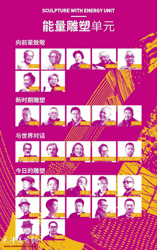 本单元有近二十位(组)动态雕塑领域的实践者,如瑞士艺术家、国际动态艺术组织(KAO)创始人拉尔方索、韩国艺术家赵炳澈;以及多位国内具有前沿实践观念的艺术家,如陈刚、陈琪、邓筱、焦兴涛、吕连涛、刘晓非、刘亚洲、孙铭海、Sigma组合、时子媛、唐勇、汤杰、王恩来、徐鑫雵、占研、张晓影、赵生帆等。