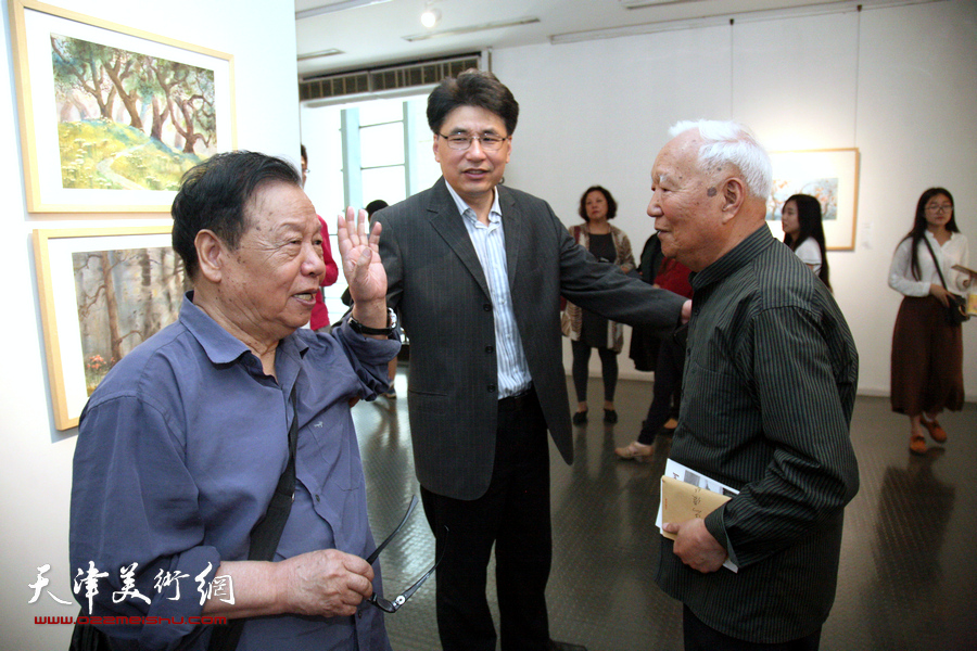 左起:张蒲生、郭振山、焦俊华在画展现场交谈。