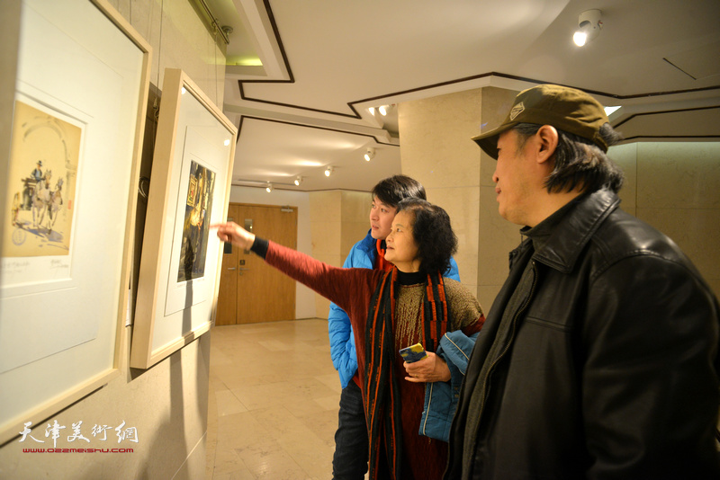 王刚、杨亦谦在天津水彩交流研讨展上。