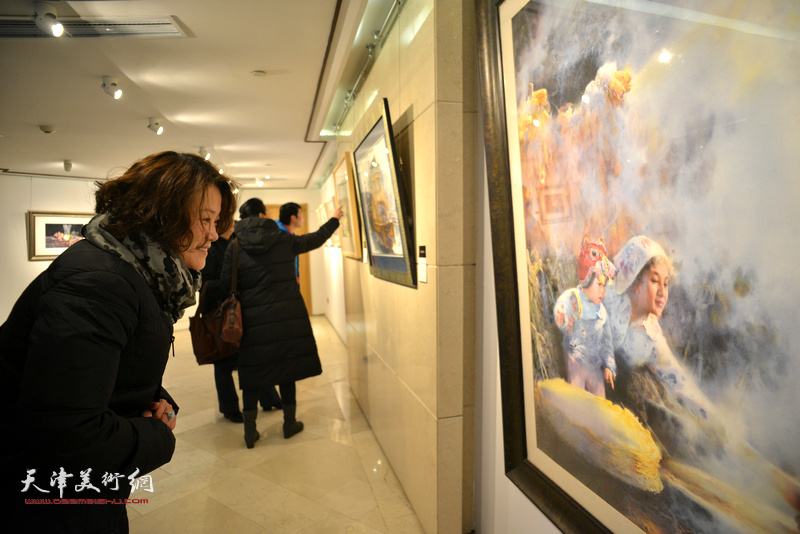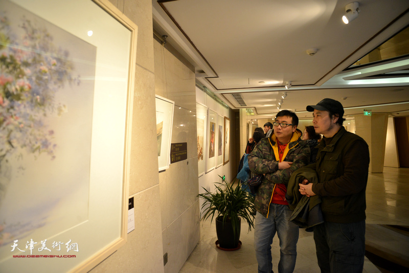 天津水彩交流研讨展1月20日开幕,图为现场。