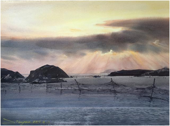 纵观蒋烨先生三十年的水彩创作之路,这个过程是从早期琐碎的摹写现实,到后来对东方美学的审美追求。中西方的绘画理论及美学体系存在着差异,最本原的美学差异是:写意与写实。这个差异也可从外在与内在两方面看出,从外在看,其一,西方绘画注重再现自然,中国绘画则注重表现自然;其二,西方绘画重典型,中国绘画重意象。从内在方面看,中西方的绘画都受各自哲学思想体系的影响,西方的美学根植于西方哲学,中国美学则根植于东方哲学。