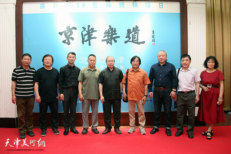 左起:魏瑞江、姜中立、李响、阎秉会、李宗儒、陈重武、朱志刚、王文元、田同芬在画展现场。