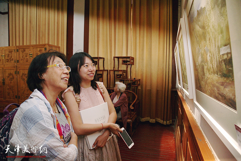 田同芬、陶香莲在画展现场。