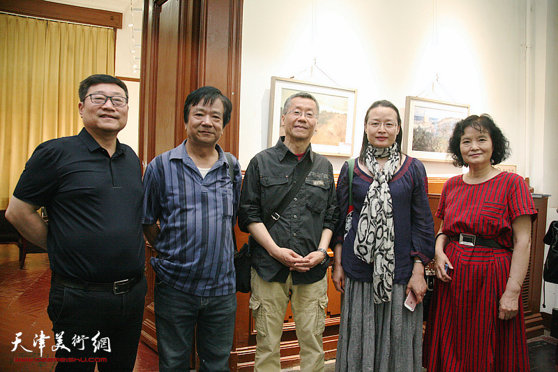 左起:陈坚、陶香莲、高冬、魏瑞江、王刚共同庆祝画展开幕。