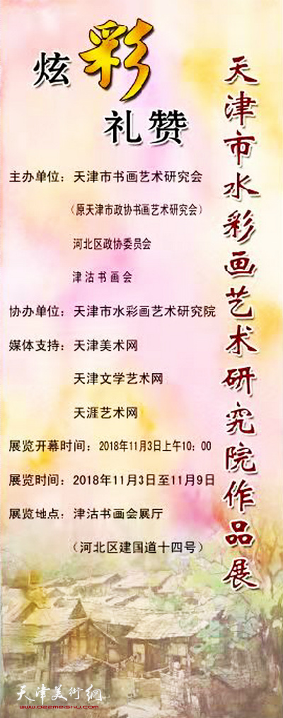 “炫彩礼赞——天津市水彩画艺术研究院作品展”将于11月3日上午10时在津沽书画会艺术展厅开幕。