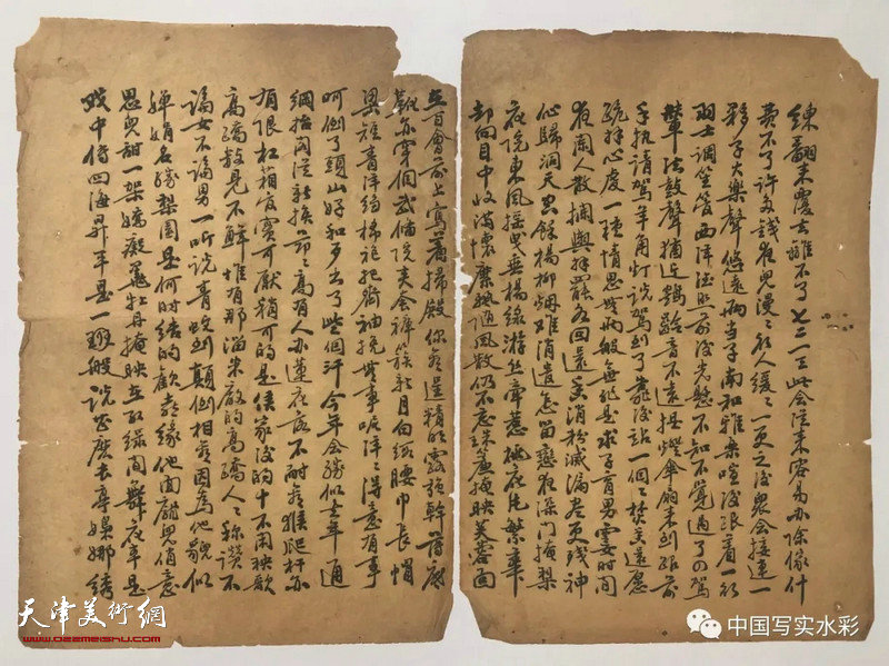 为了更好地画出历史感,我到旧物市场淘来不少旧书,只为书的空白扉页可以为我所用,在这泛黄的老纸上,虽不及水彩纸好画,但格外有感觉。