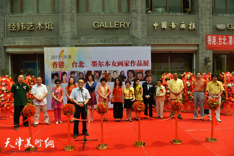 “香港、台北、墨尔本女画家作品展”15日在津开幕,图为开幕式现场。