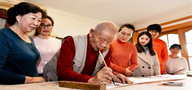 唐云来走进天津德谦文化艺术交流中心书写福字迎新春