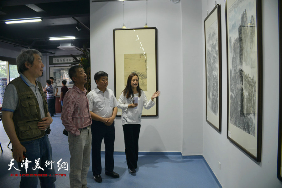 邓国源、张亚光、张养峰、王昕在天津美术网艺术馆观看天津山水画邀请展。