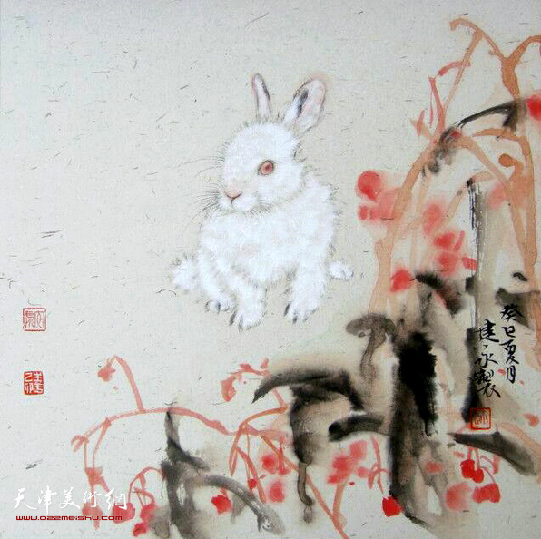 多年的专业学习,笔墨素养和文史修习,形成了他虚静空灵、简约疏淡的花鸟画风。2011年在古泥先生的指导下专攻动物画,已初步形成个人风貌。其作品笔简意丰、意趣横生、清雅可人,逸笔草草即神态具现,尤善画兔。他将动物“拟人化”,眼神中透着动物与人、自然的和谐,这正体现了他作为一名优秀画家最为深刻的人文关怀、艺术使命和社会责任。