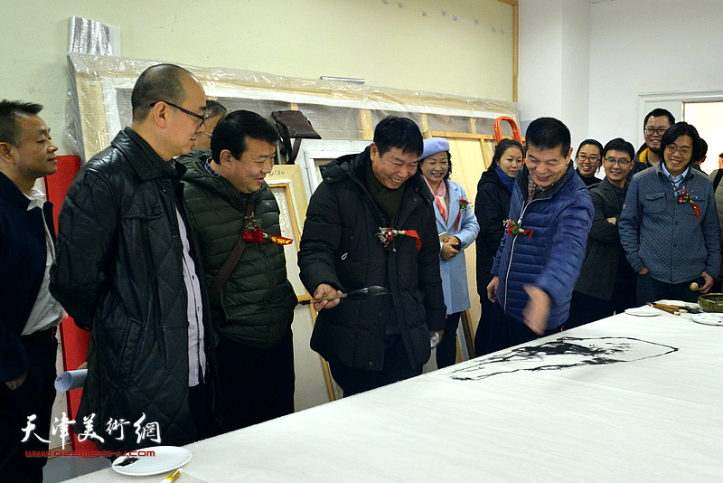 王书平、贾广健、王爱宗、罗毅航、马明等在画展现场。