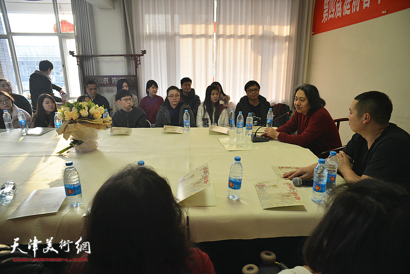 第四届庭前春早-贾广健师生中国画作品展创作座谈会现场。