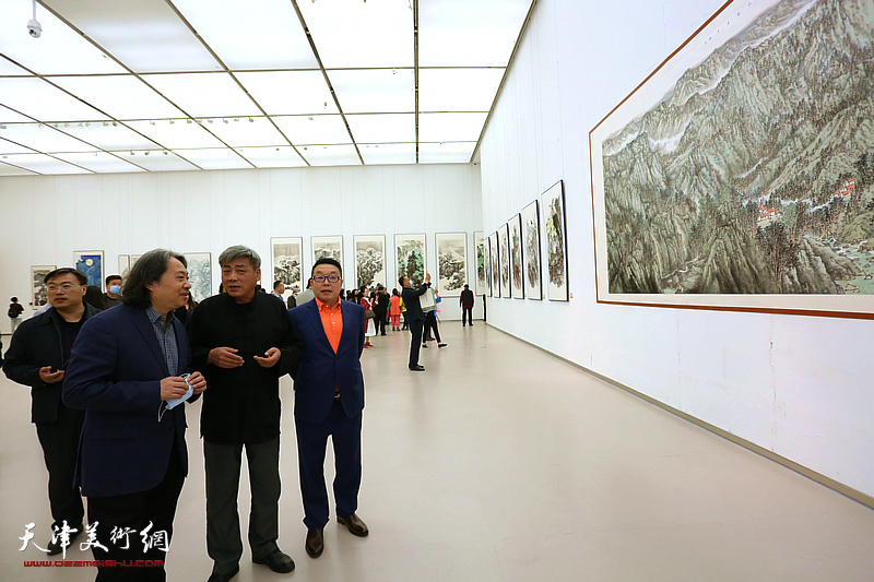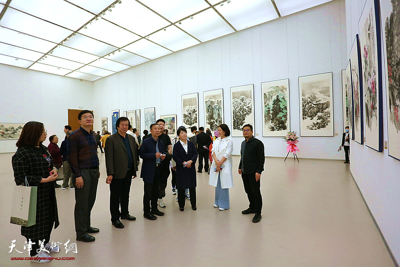 散襄军、李毅峰、王卫平、马驰、张立涛等在画展现场观看作品。