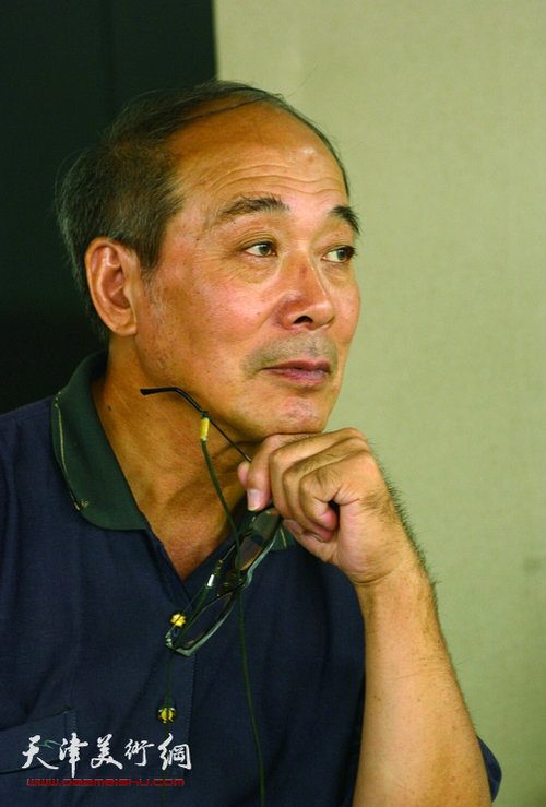图为天津美协主席王书平在画展上观赏宋家褆的画作。