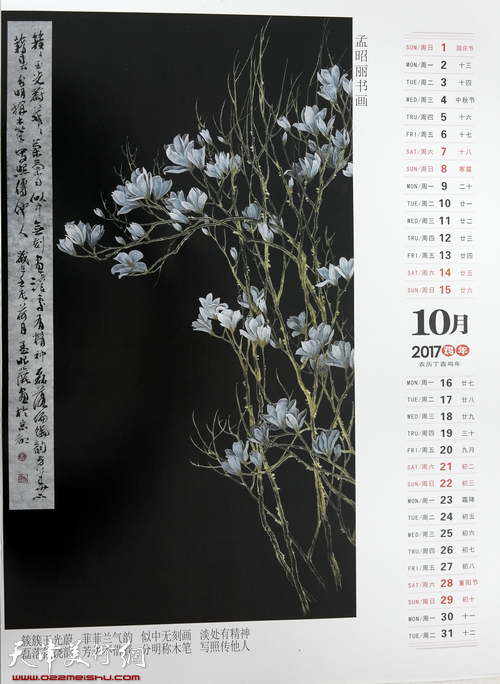 艺术是相通的。孟昭丽对绘画、书法、篆刻、瓷刻等颇有造诣,其书法,各体皆能,尤其擅长隶书,造型美观大方,笔锋苍劲有力,内涵丰富而又流动感强,在女子书法家中鲜有如此刚劲沉稳、雄浑朴茂、大气磅礴的独特风格;其绘画,更是被行家认为融贯中西,既有对古典的传承,又吸收了西画的设色方法,融浓郁的民族特点和时代精神于一体;其篆刻,从临习汉印始,到涉猎吴昌硕、赵之谦、黄牧甫诸家,再到她为之动心并潜心钻研的齐派篆刻艺术,她兼收并蓄,最终练就自身的有胆有识、敢于造险、善于化险的风格;其治印,追求线条的力度和文字造型之美。从不矫揉造作,也不刻意修饰,尽须单刀直入,创新而又有朴实野趣,颇具阳刚之气;其瓷刻,更是细腻生动,其瓷刻的工具、刀法都是自己独创,“瓷不惊人誓不休”的气势由此可见一斑。